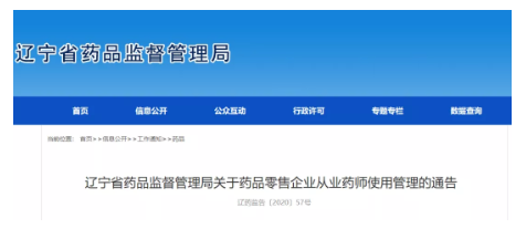 12月18日,辽宁省药监局发布了《关于药品零售企业从业药师使用管理的通告》(以下简称《通告》)。